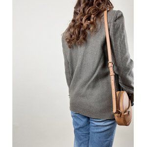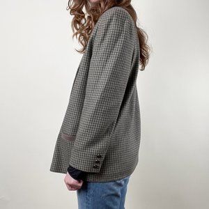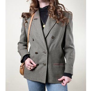 Vintage Lion Button Double Breasted Houndstooth Oversized Blazer Jacket Preppy