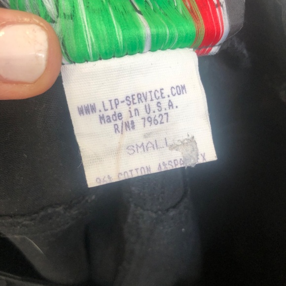 Lip Service Black-on-black print stretchy low waist, boot cut jeans. Goth vibes! Made in USA