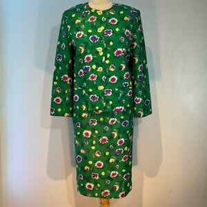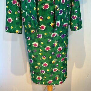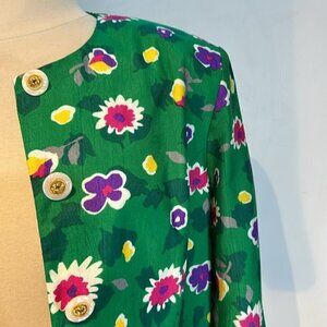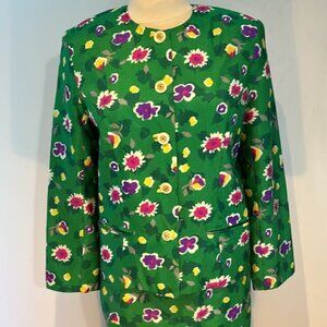 Vintage Lissa Allen Kelly green floral skirt and jacket suit set size 8