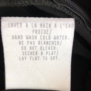 A Little Black Dress, le petite robe noire is what this Made in Canada vintage dress label is called. A beautiful flattering silhouette in this dress with great movement in the full front pleated skirt. Draped cross over deep V-neck front. Good stretch to fabric but not on fitted waist band. Great condition.