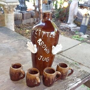 Vintage* "Little Brown Jug" Jug with 4 Mugs