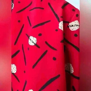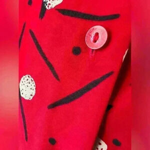 Vintage Liz Baker Red and Black Polka Dot Button Up Blouse Retro Eclectic 14
