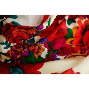 Vintage Liz Claiborne Colourful Floral Silk Hand Rolled Scarf