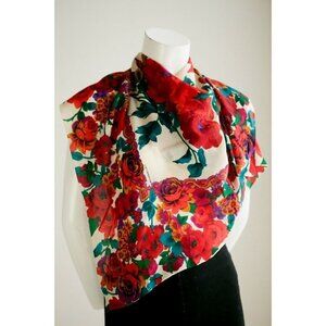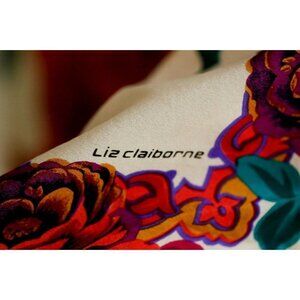 Vintage Liz Claiborne Colourful Floral Silk Hand Rolled Scarf