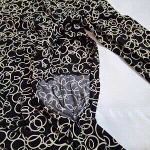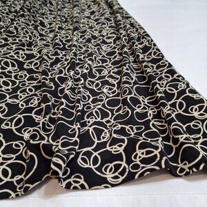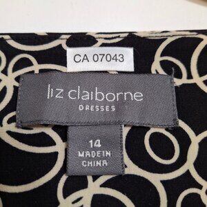 Vintage Liz Claiborne Fit & Flare Empire Midi Dress Size 14 Deep V Collar 3/4 Sleeves Pleated Waistline Corset Side Zip Open Polka dot Black & Beige Figure-Flattering Retro