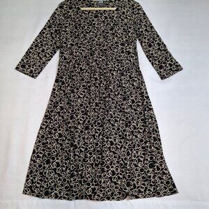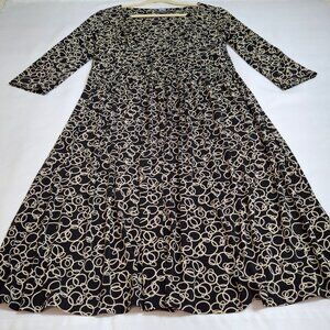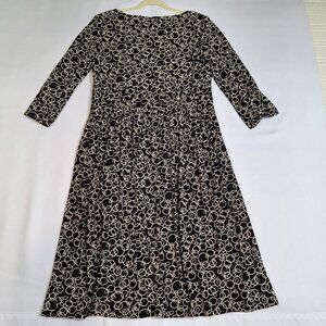 Vintage Liz Claiborne Fit & Flare Empire Midi Dress Size 14 V Collar 3/4 Sleeves