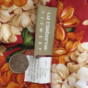 Vintage Liz Claiborne Lizwear Red Floral Button-Up long sleeve Shirt 100 % Cotton Red Sz L