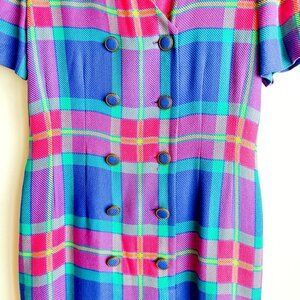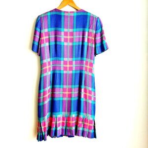 Vintage Liz Claiborne Plaid Pink Teal Purple Office Dress 10.