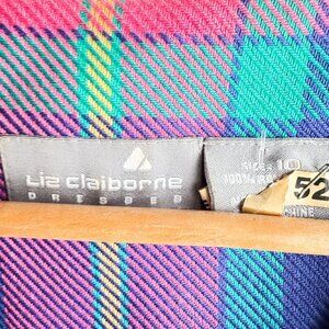 Vintage Liz Claiborne Plaid Pink Teal Purple Office Dress 10
