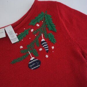 Vintage Liz Claiborne Red Green Embroidered Christmas Ornaments Knit Crewneck L