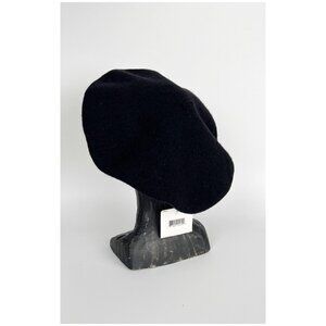 This timeless vintage black beret cap was deigned by Liz Claiborne likely in the 1990s - 2000s. The hat is constructed from 100% wool felt and features an embroidered crest