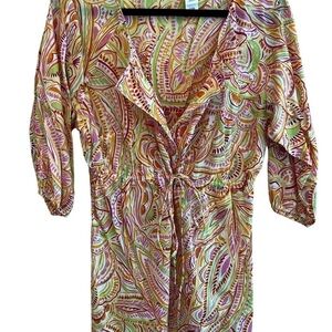 Vintage Liz & Co. Multi- Pattern Cover-up Blouse EUC