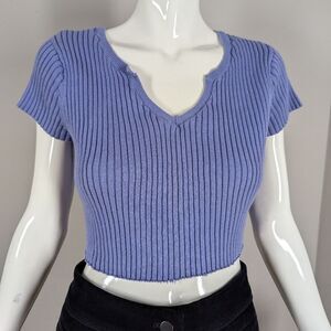 Vintage Liz Claiborne Studio cropped ribbed tee. Fitted with a notch v-neckline and short sleeves. 100% cotton with a soft, thick texture. Retro Y2K vibe with a flattering silhouette—easy to style with high-waisted denim or skirts.