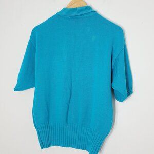 LizSport Women's Blue Short Sleeve Collared Neck Pocket Cotton Sweaters Size Medium