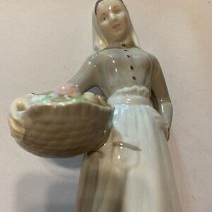 Vintage Lladro Nao Porcelain Glossy Girl with Fruit Basket Figurine