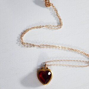 Dainty heart locket necklace made with a mix of vintage and new components. I added a vintage red glass heart stone to a vintage brass locket that opens from the bottom - ready for you to add your special photo, note or other meaningful item! This lightweight, easy-to-wear necklace is finished with a contemporary dainty gold-plated cable chain with lobster clasp closure.