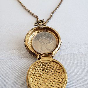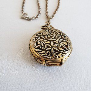 Vintage Locket Pendant. Gold & Silver antiqued tones. Statement necklace.