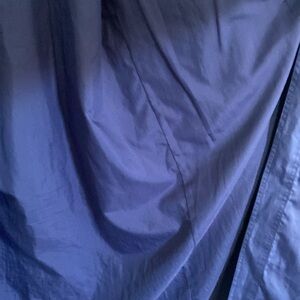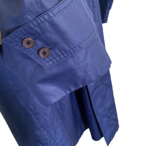 DESCRIPTION: A standout fun vintage statement piece! The quintessential lightweight trench coat / Raincoat. In a beautiful blue. Pleated back. Hand pockets. Button up. Belt is missing.