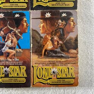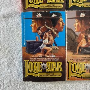 Good vintage condition. Signs of wear shown in pics. Please look at all pics and zoom in for a closer view. Inside pages may contain notes, highlighting, creasing and/or other minor signs of use. Vintage Lone Star Action Western Romance Novel x4 USA