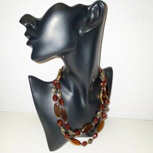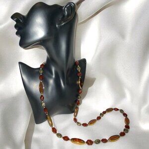 Vintage Long Necklace Brown Tones Plastic Beads 38 inches