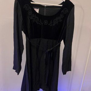 Vintage Long Sleeve Black Dress with Velvet and Embroidery
