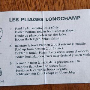 This stylish XL folding traveling bag is designed to conveniently fold up when not in use. There is one inside flat pocket. When you purchase the bag, you will find the original instruction card on how to fold the bag located in the inside pocket.