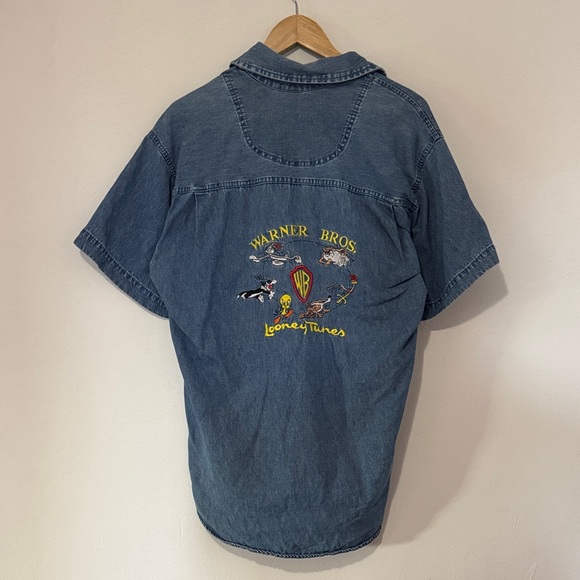 Vintage Looney Tunes Denim Shirt / Medium / 90s / Embroidered Logo
