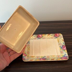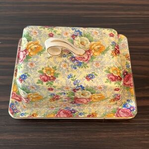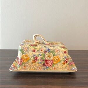 Vintage Lord Nelson Ware covered butter dish in the "Rose Time" chintz pattern.