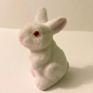 Vintage Lot of 2 Flocked White Bunny Rabbit Miniature Figures Red Eyes