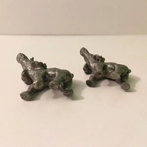 Vintage Lot of 2 Mini Pewter Elephant Figurines 2 Inch Size Trunk Up Figures