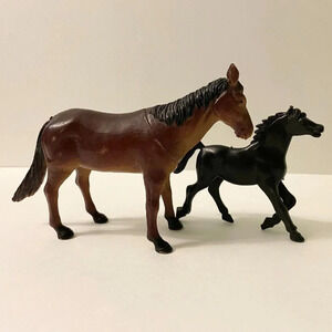 Vintage Lot of 2 Plastic Hollow Horses Brown and Black 2.5 and 3.5 Inch Size