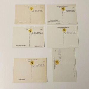All 6 postcard are pre-owned but never used. There have some staining around the edges and creasing as well. Please see all photos for exact items.