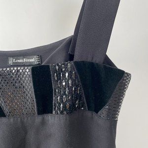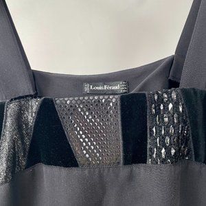 Vintage Louis Feraud Black Silk Square Neck Tank Top, Velvet/Shiny Trim