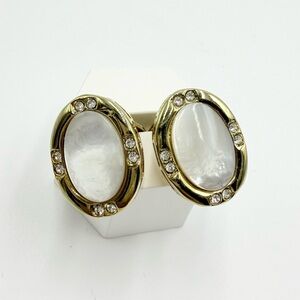 Vintage Louis Rousselet Gold Tone Mother Of Pearl - Rhinestones Clip-On Earrings