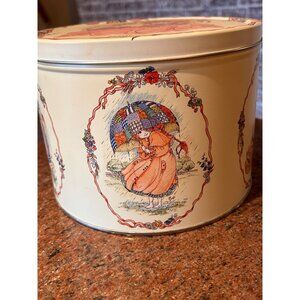 This Vintage Louise Themed Tin displays a charming little girl in pastel hues. Measuring 7.5” x 5.5”, it's perfect for decor or storage.