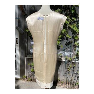 Vintage Lourdes Chavez Designer Shift Dress Ivory Gold Mother of Bride Cotton Sz