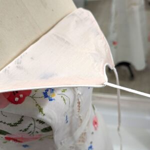 100% cotton, design & constructed from one handmade vintage table cloth. Custom dyed nude silk cotton voile lining.