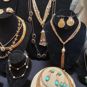 Necklaces, Earrings, Brooches, and pins, 14K gold filled, Rhodium plated Silver, Turquoise, Emerald, Diamond CZ, Tiger eye, Amber, Jade, and many more