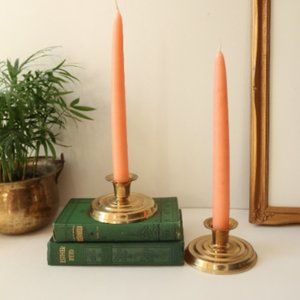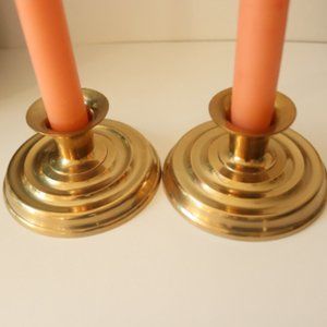 A lovely set of solid brass candlestick holders. I really like this design as it's very stable/not easy to knock over.