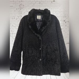 Vintage Luba Black Faux Fur Jacket Women Size L Cozy Retro Classic Coat