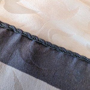 This stunning vintage scarf by Luciano Soprani is a true collector's item. Made from 100% silk, it features a beautiful abstract print in soft shades of bluish grey, cream and tan. The intricate design is both delicate and vibrant, with intricate details that highlight the designer's impeccable craftsmanship. The edges are hand rolled which is indicative of a high quality piece.
