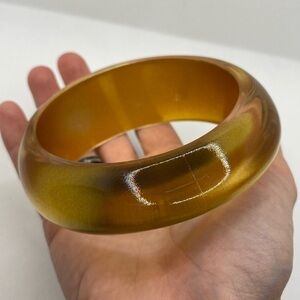 Vintage Lucite Asymmetrical Chunky Bangle Transparent Gold Clear Large Bracelet