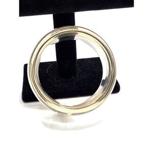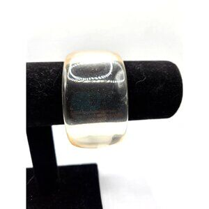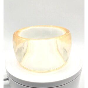 Rare Clear Lucite 2" chunky bangle bracelet with an amber or goldish tone. Has original sticker still on bracelet but stored in a jewelry box for decades and has a couple of small marks from other jewelry it was stored with. Please see pictures for details. Imperfections not noticeable when worn. Please see my other listings for more great vintage items.