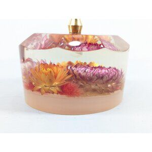Vintage Lucite floral pen stand, Dried flowers encased in Resin Wedding