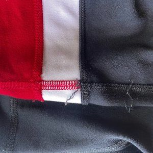 Cool pair of vintage black, red & white Groove pants, very soft (Luon fabric?). Size 8 TALL. Good condition, worn very little. Some pilling and areas of minor unraveled stitching and loose threads. No rips, tears or stains.