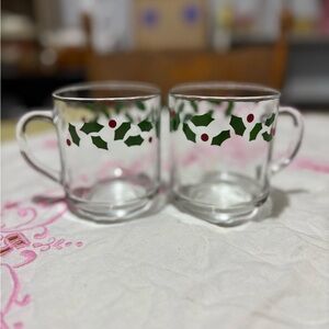 Vintage Luminarc Festive Holly Glass Mugs - Set of 2