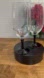 Striking set of vintage Luminarc France goblet-style glasses featuring clear, crystal-like bowls paired with dramatic black stems. Their generous 14 oz size makes them wonderfully versatile—ideal for beer, wine, cocktails, sparkling water, and holiday entertaining. The sleek two-tone design brings a bold, modern edge with a true MCM bar-cart feel.