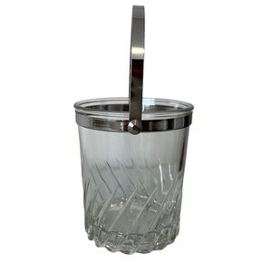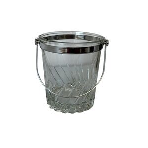 Beautiful vintage Ice Cube Bucket Chunky Swirl Pattern with a silver handle.