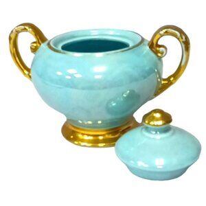 Vintage Lusterware Iridescent Duck Egg Blue 22k Gold Trim Lidded Sugar Bowl