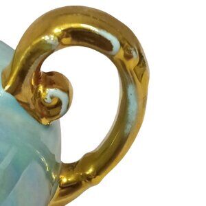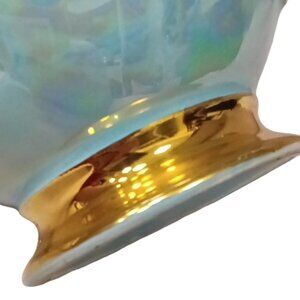 Vintage Lusterware Iridescent Duck Egg Blue 22k Gold Trim Lidded Sugar Bowl